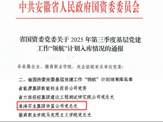 星火凝聚,亦可燎原。9月26日,淮海實業集團所屬華星公司黨總支 “‘新’星之火 可以燎原” 黨建品牌,成功入選省國資委黨委基層黨建工作 “領航”計劃培育庫。