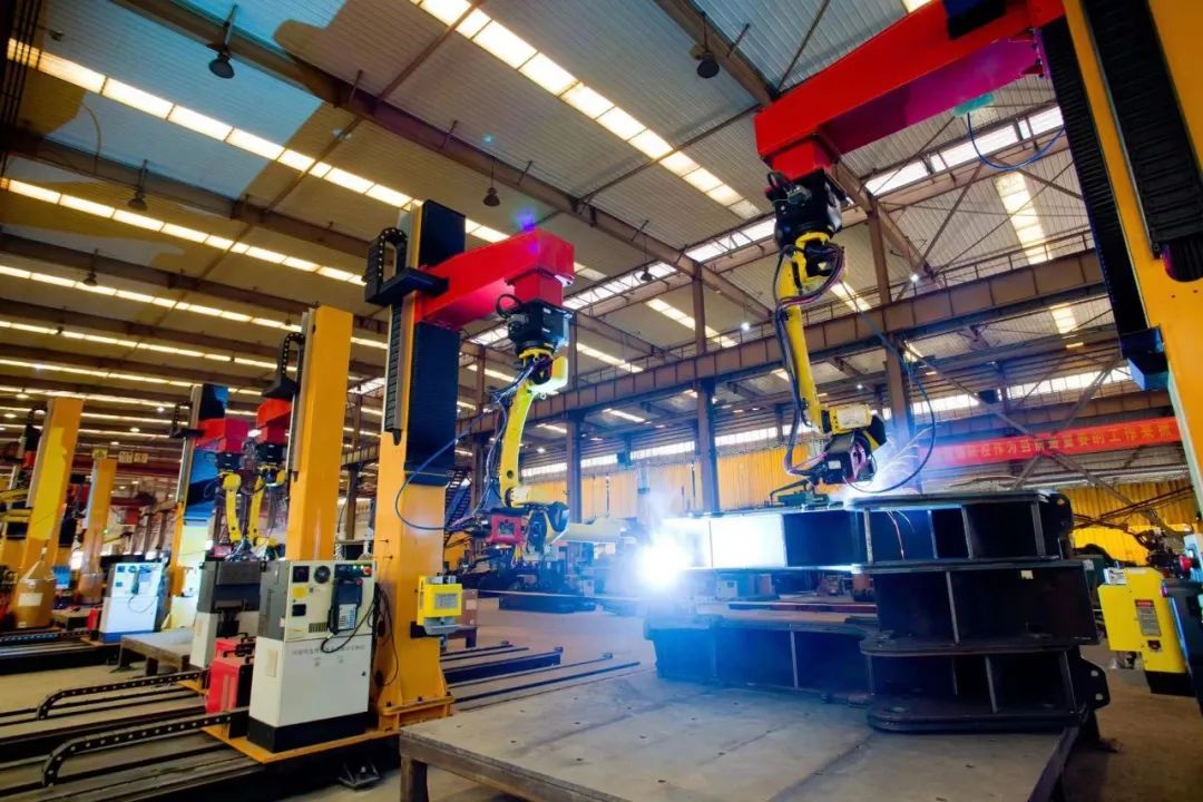 安徽礦機自動焊接機器人正在進行焊接作業