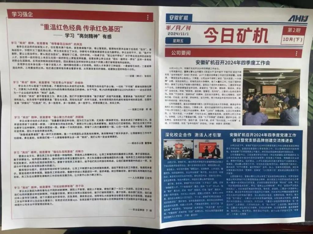 開展文化價值體系重塑工作,明確發(fā)展的方法論、路線圖和遠(yuǎn)景目標(biāo),形成自上而下萌發(fā)、自下而上滋養(yǎng)、上下同欲的“新質(zhì)文化力”,樹立“工作學(xué)習(xí)化,學(xué)習(xí)工作化”理念,在工作中探究問題,把問題變成課題,轉(zhuǎn)化成發(fā)展動力。為讓新理念“動”起來、“熱”起來,充分發(fā)揮信息傳播主渠道作用,利用網(wǎng)站、微信公眾號、《今日礦機(jī)》半月刊等平臺,通過企業(yè)文化展示墻、宣傳欄、電子屏等媒介,深入解讀理念釋義,展示干部職工踐行新理念、推動高質(zhì)量發(fā)展的生動實踐,進(jìn)一步增進(jìn)文化和價值認(rèn)同。