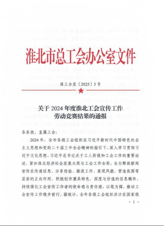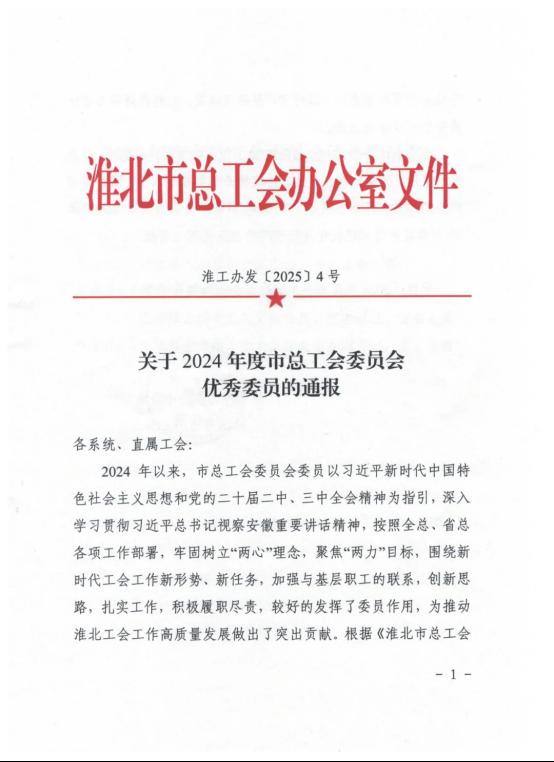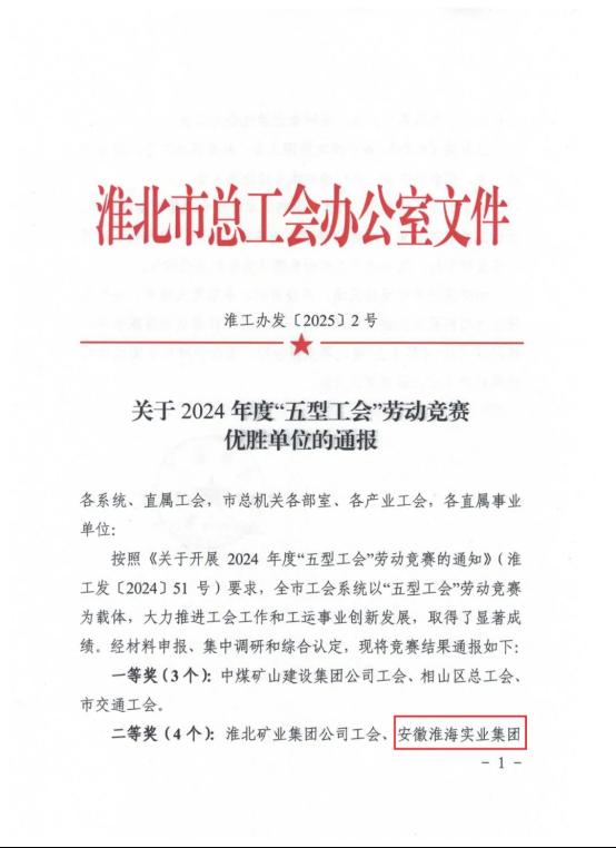 3月6日,淮北市總工會召開十三屆三次全委(擴大)會議。會上通報了2024年度全市“五型工會”勞動競賽優勝單位、宣傳工作勞動競賽結果和市總工會委員會優秀委員。淮海實業集團工會獲2024年度“五型工會”勞動競賽二等獎、全市工會宣傳工作勞動競賽二等獎,集團工會副主席朱建華獲評市總工會委員會優秀委員,并在會上做交流發言。