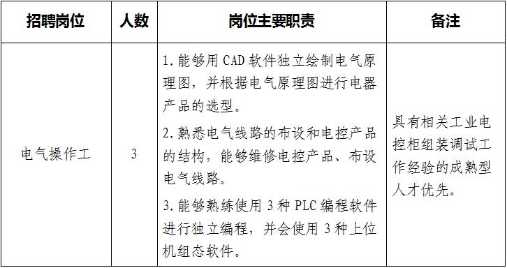 根據發展需要,需招聘技能人員,現將有關事項公告如下: