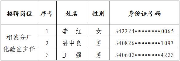 相山水泥公司相誠分廠化驗室主任招聘資格審查結果公告
