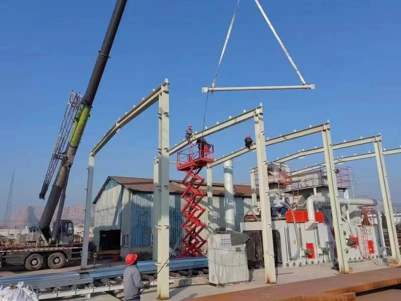 12月21日,安徽礦機下料車間板材庫里,機電安裝保運分公司施工人員克服天氣寒冷帶來的困難,正加緊安裝鋼板拋丸機廠房,力爭第二臺鋼板拋丸機早日投入使用,緩解鋼板加工除銹生產壓力。